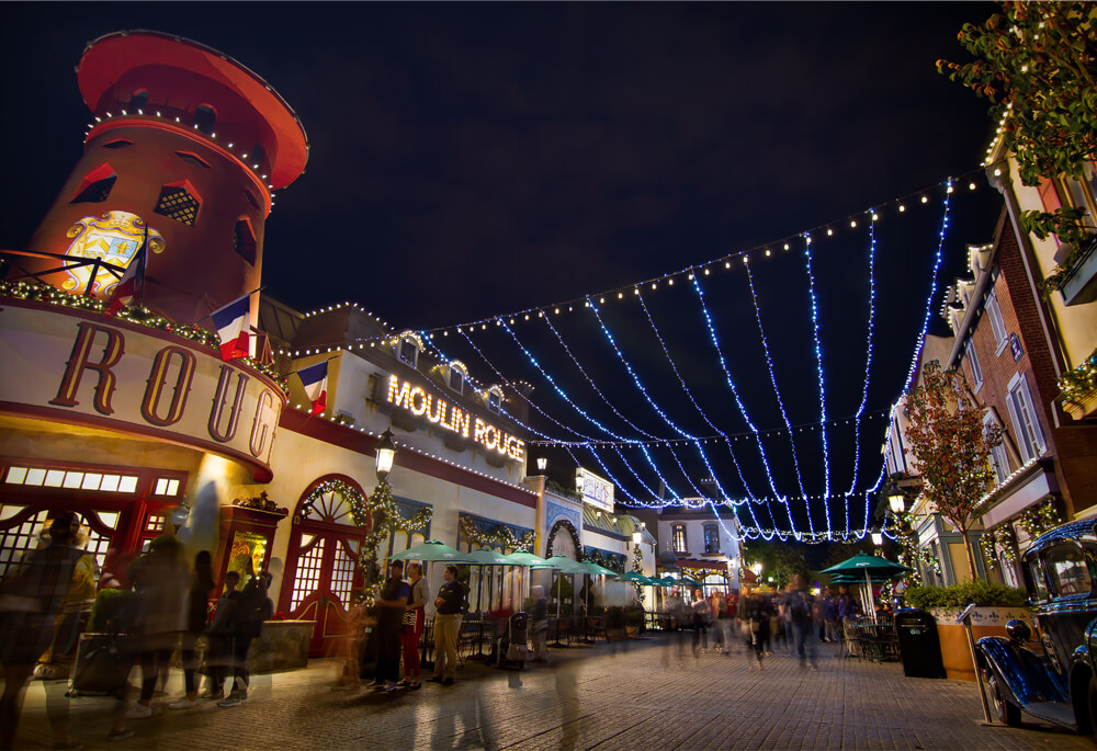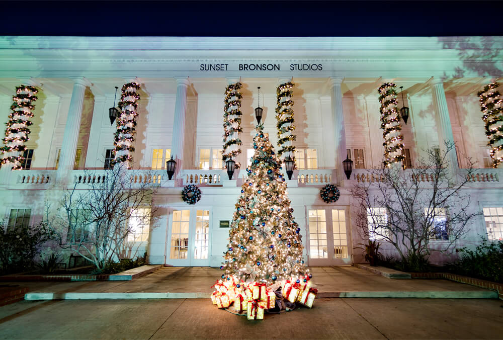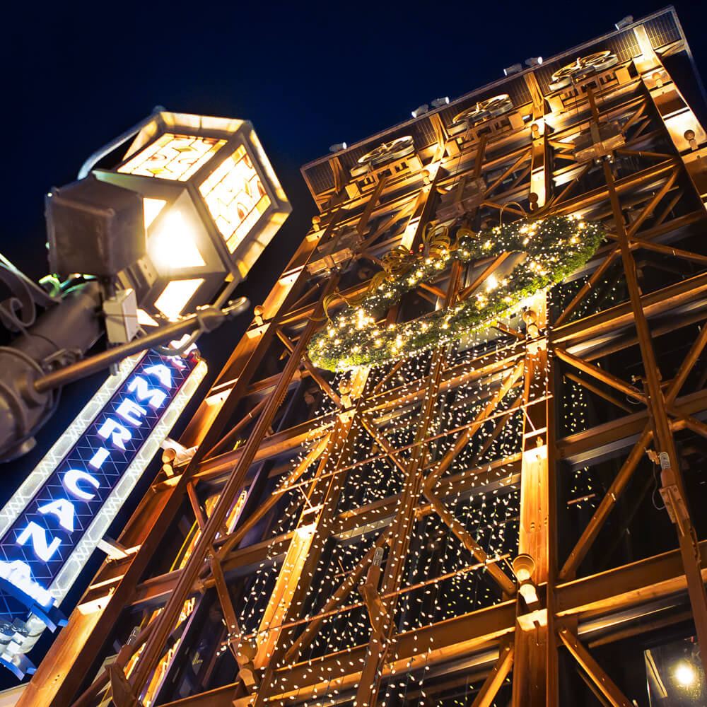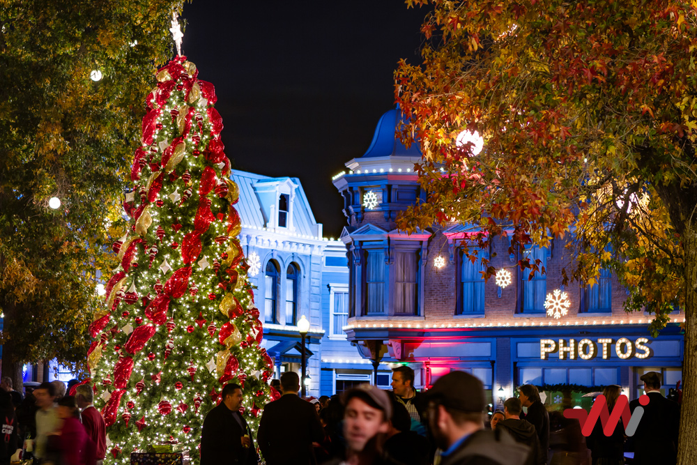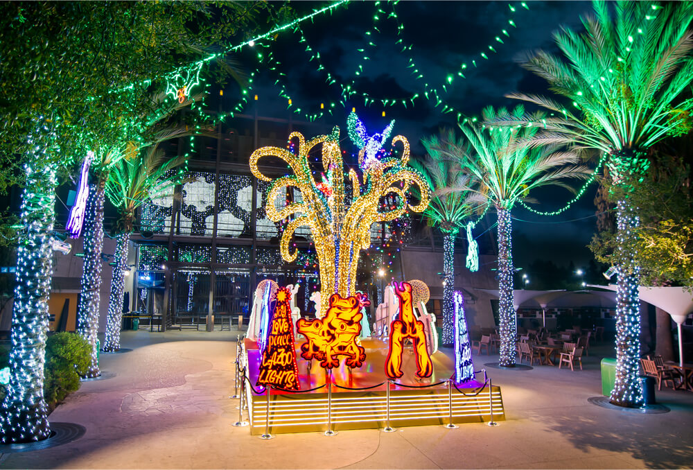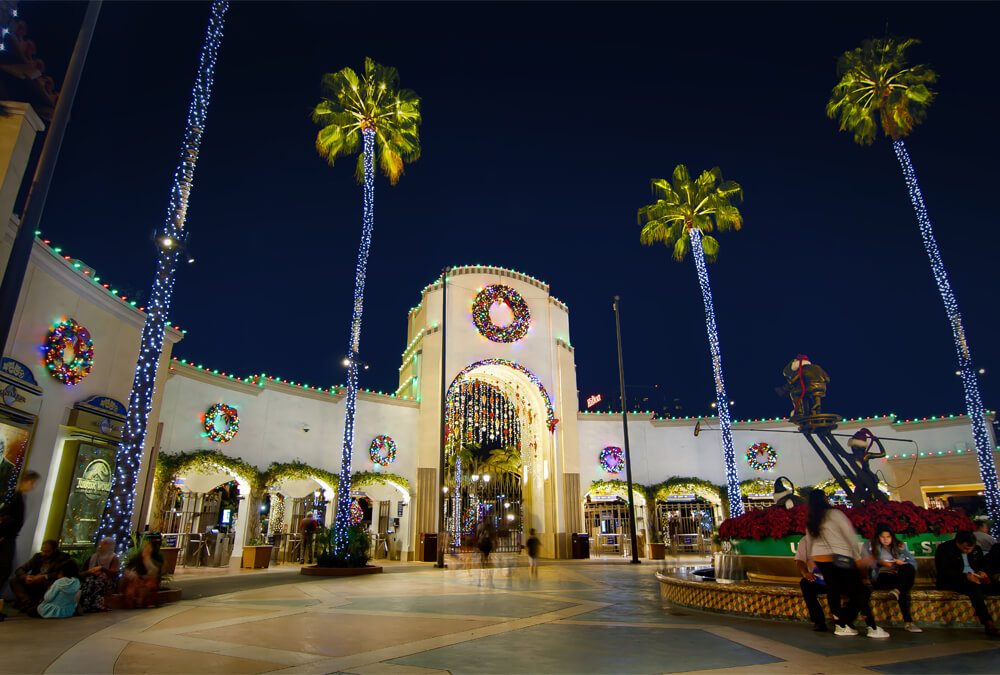 Universal Studios Custom Christmas Lighting at the entrance of the park