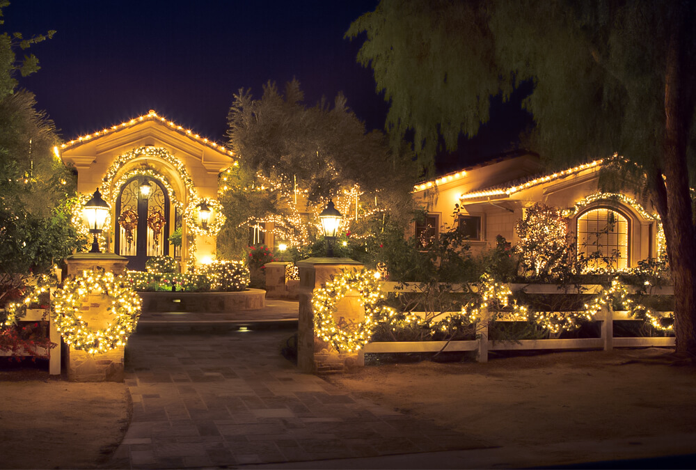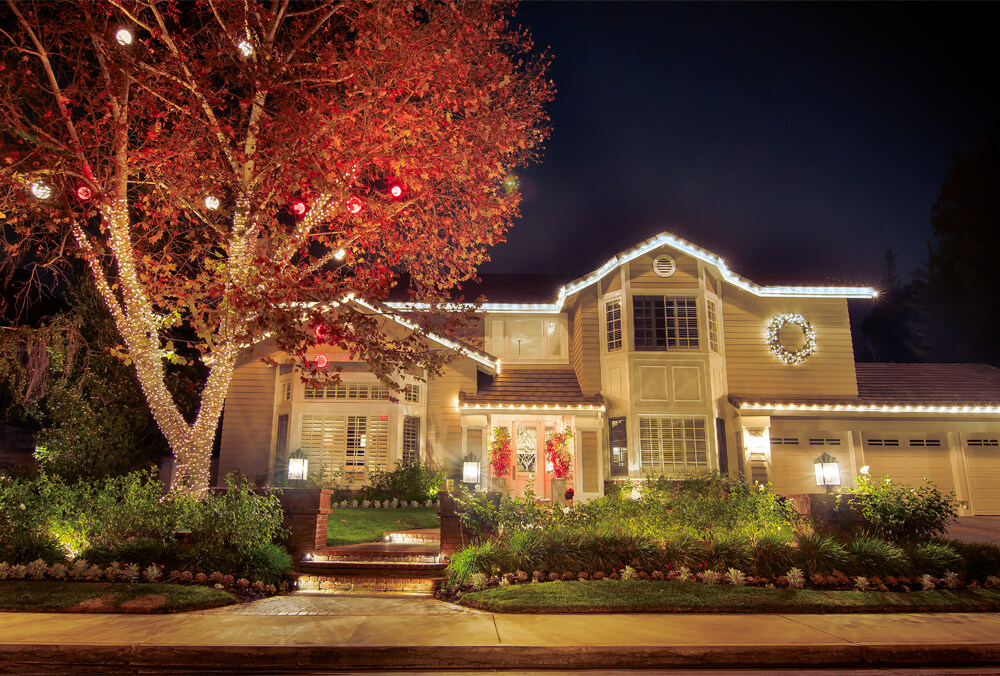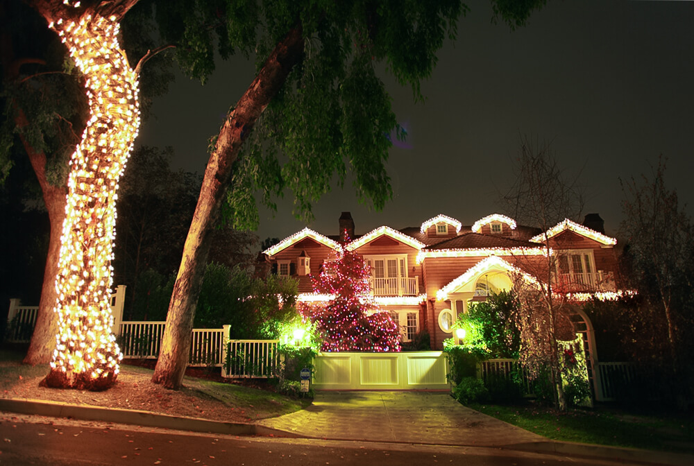 Christmas Roofline Lighting and Christmas Tree for Large Home