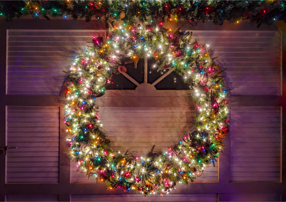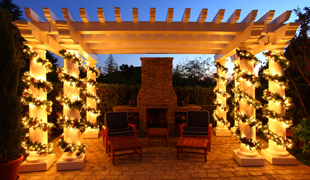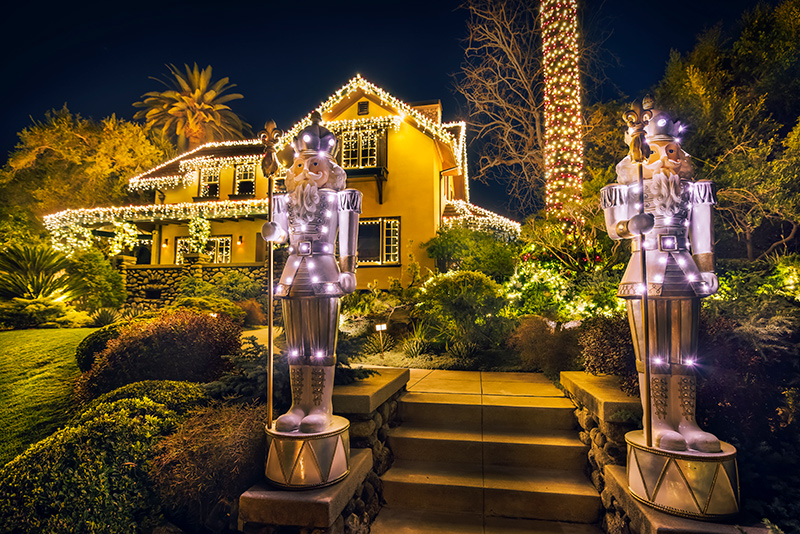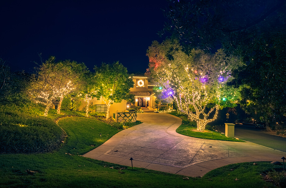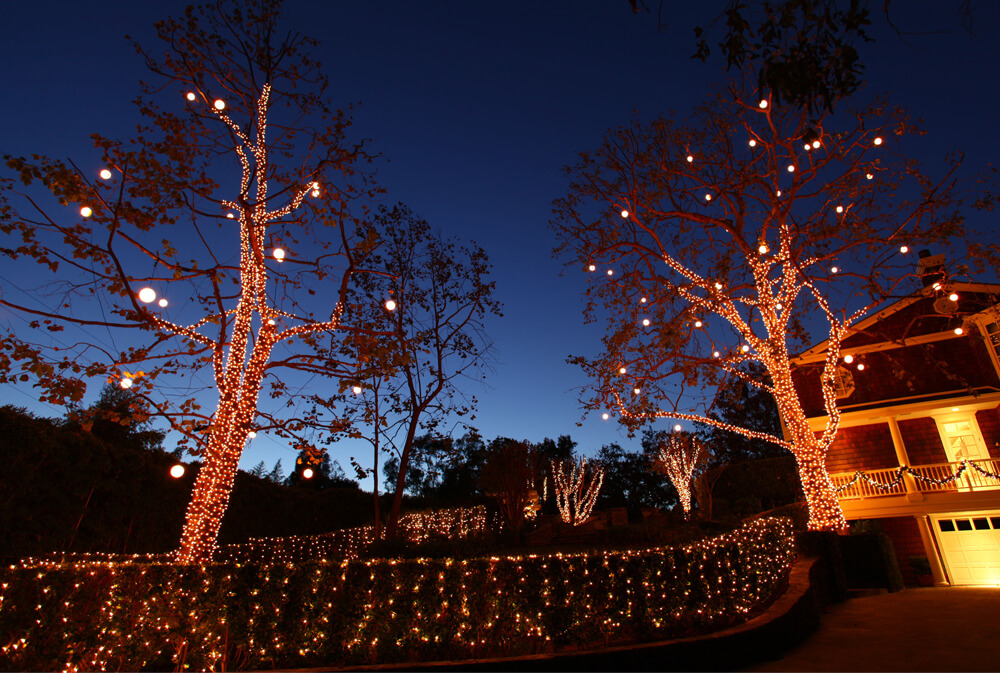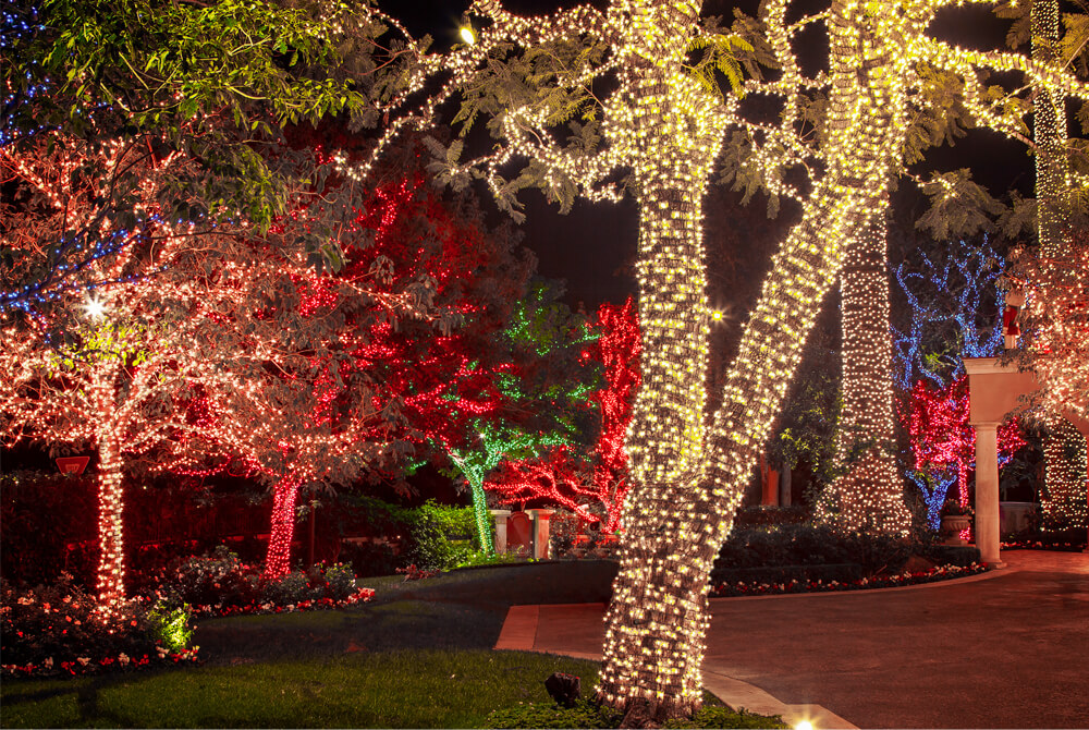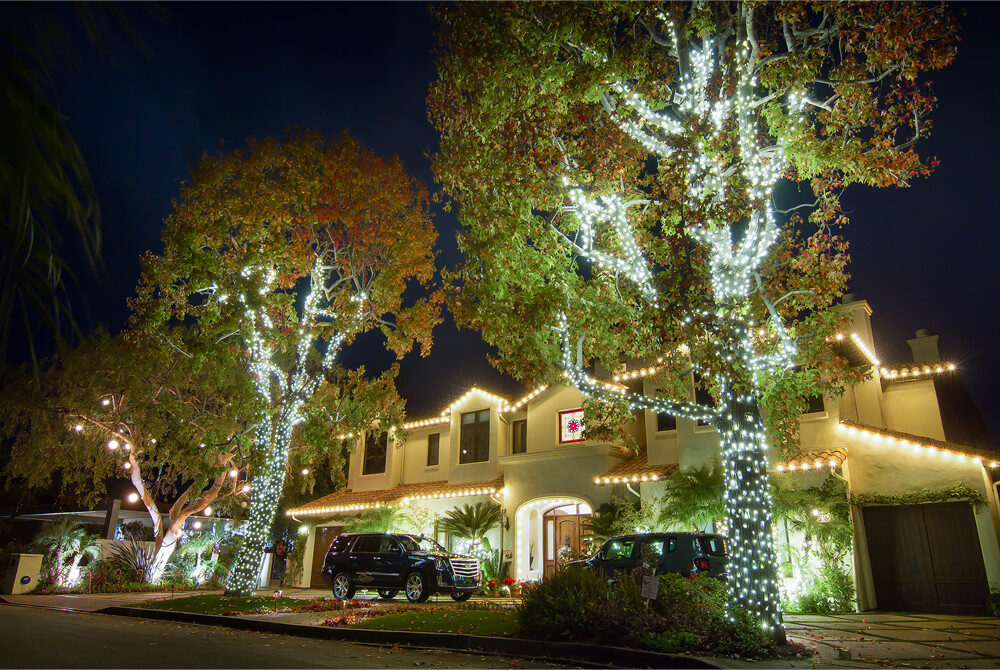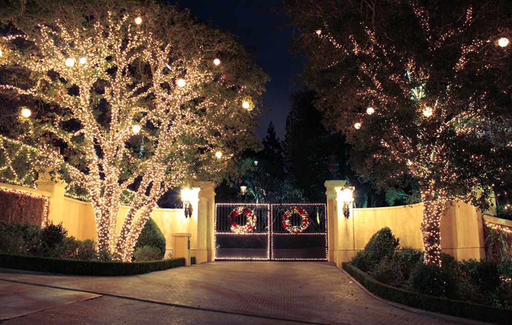 Christmas Décor featuring tree wrapping and LED reindeer for a residential property