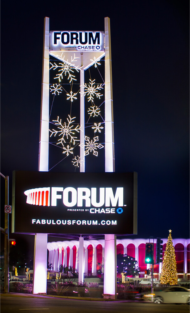 Programmable Christmas Lighting at The Forum in Inglewood, CA - Done by Mobile Illumination