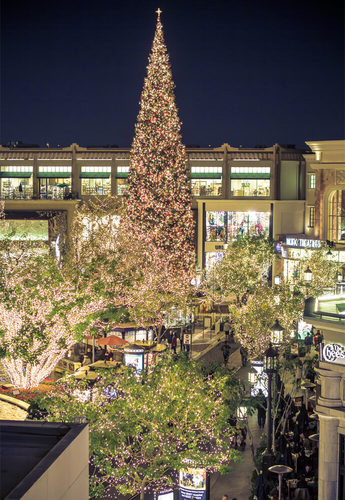 Year-Round Lighting Installation for a shopping center in Los Angeles County - done by Mobile Illumination